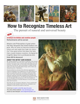 The studio will be divided into groups, with beginning students working on the basics of figure drawing and the fundamentals of oil painting while more advanced students work on figure painting, portraiture, color composition, and draftsmanship and design (an understanding of the abstract qualities underlying realistic or traditional art). In draftsmanship, students will learn how to plan serious paintings and significant projects, understand how great compositions are put together, and discover how to use the skills of designers and draftsmen.